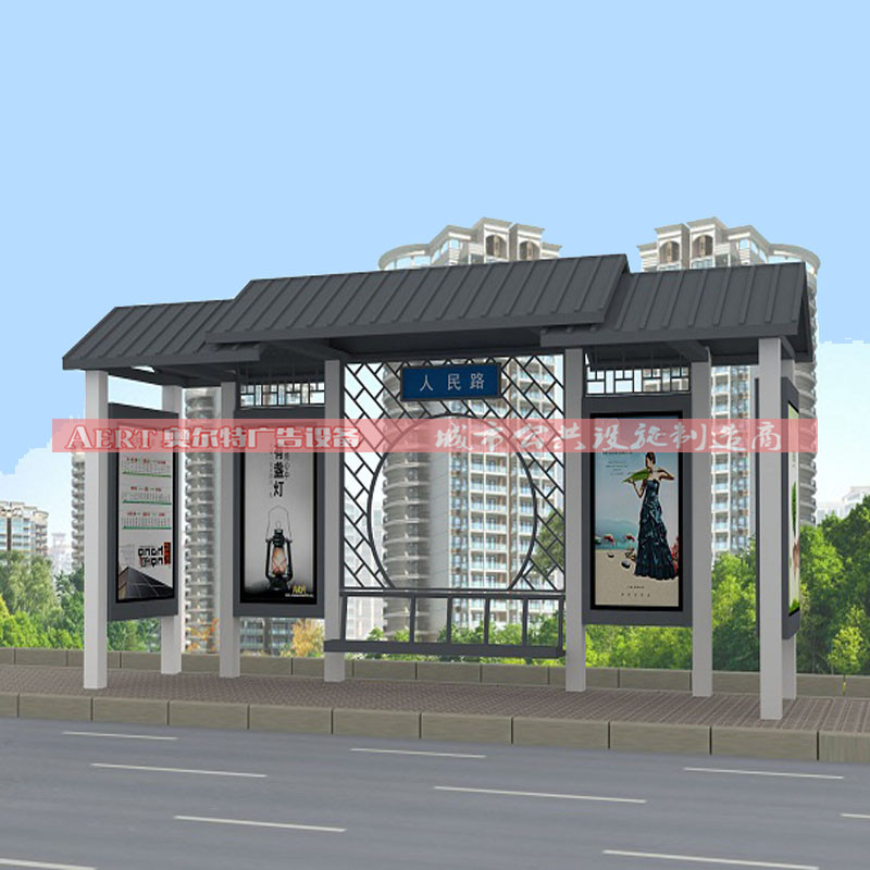 中式花格是具有濃濃中國(guó)味的裝飾元素,在如今,中式花格被融入到各個(gè)你可以想到的空間中,作為一種裝飾,作為一個(gè)符號(hào),而奧爾特人也別具匠心的把它運(yùn)用到公交候車亭招呼站的款式制作上。